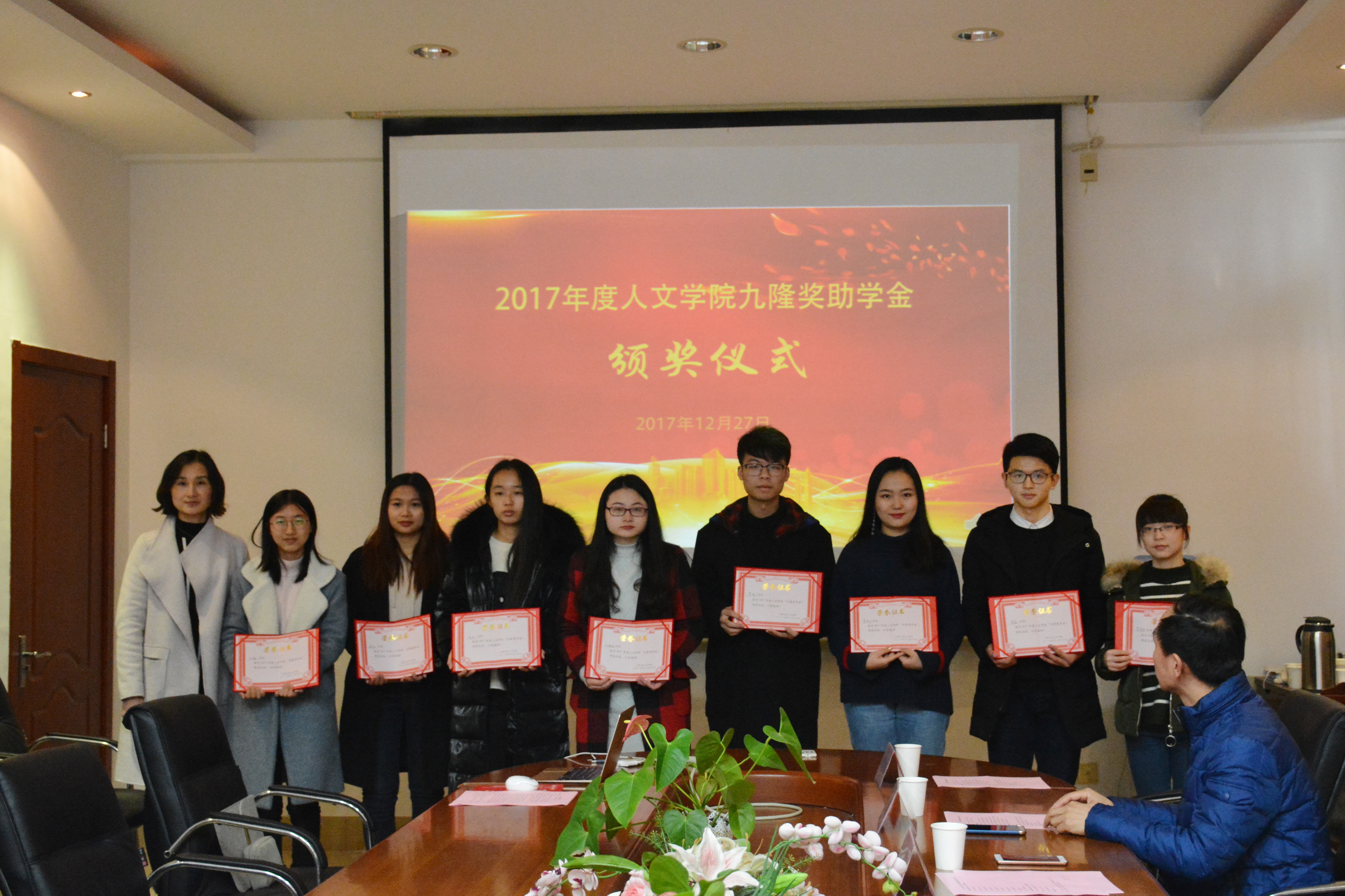 九隆奖助学金颁奖仪式在田家炳楼218举行。江南大学学生工作处副处长单筱婷,九隆保安服务有限公司副总经理查锡荣、高伟钢,办公室主任殷宝珠、运营部经理杨汉存,香港六合彩官网资料