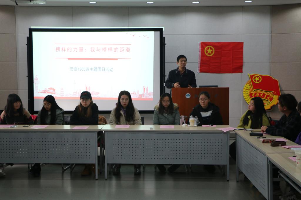 汉语言文学1805班“榜样的力量:我与榜样的距离”主题团日活动在田楼506室进行。校党委副书记戴月波、学生工作处处长张菁燕、校团委书记王维、香港六合彩官网资料