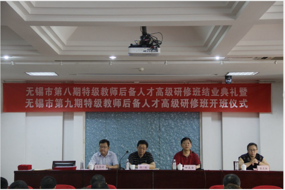 最后许敏代表无锡市教育局发言,他回顾了近年来无锡市高端教师培训的培养历程,希望研修班学员要立足于讲台、潜心于教学、专注于修炼,做“有理想信念、有道德情操、有扎实学识、有仁爱之心”的好老师,担当起教育使命,在课堂上充分展示自己的师德、师能,做思想和知识的传播者,做团队的引领者,争取早日成为真正意义上的特级教师。