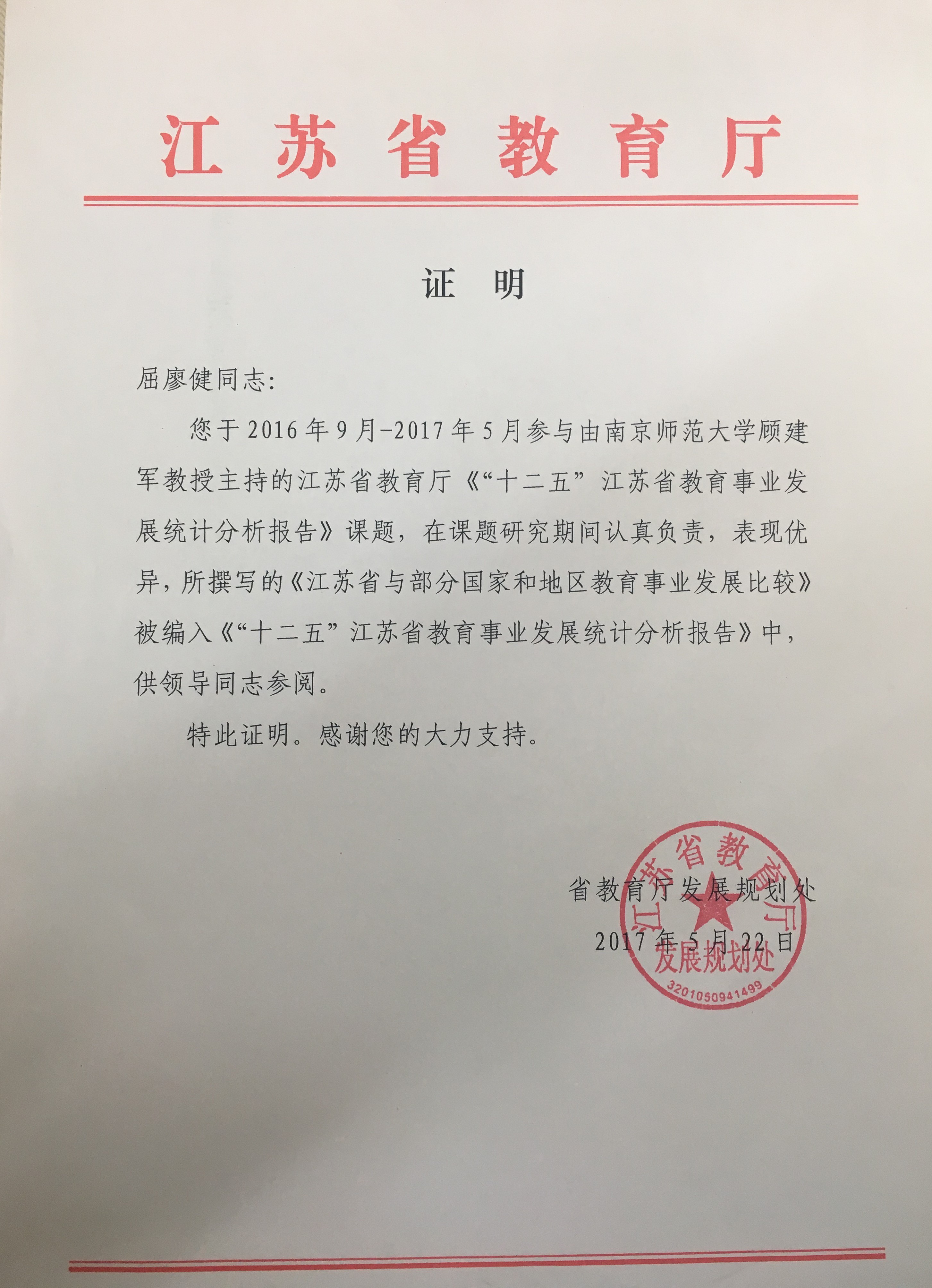 屈廖健博士所撰写的教育政策分析报告“江苏与部分国家和地区教育事业发展比较”被收入其中。