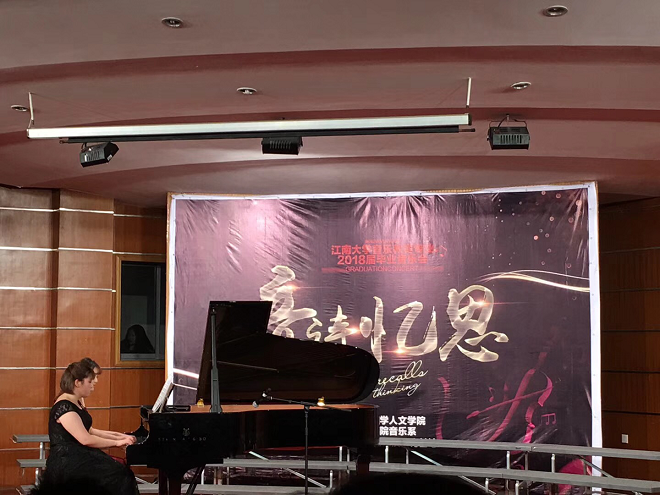 音乐会的开场曲目是于2017年荣获江苏省大学生艺术展演二等奖的民乐合奏《山居》,让全场观众感受到了新民乐的魅力;接着是蔺雨婷同学演唱的流行歌曲《胡桃夹子》,她用悠扬的歌声和高超的演唱技巧让全场沸腾起来;随后,获得江苏省大学生艺术展演三等奖的女声小合唱《雨中行》、激情四射的钢琴四手联弹《英雄》、两首歌剧咏叹调选段、爵士风格的二胡重奏《阿里山的姑娘》等精彩纷呈的节目,让观众欣赏了许多不同风格的音乐作品;整场音乐会的压轴节目是由2014级全体学生演唱的两首不同风格的合唱曲《雪花的快乐》和《Mangwani M'Pulele》。最后,舞台上的同学们随着音乐会的尾声曲目《江南的夏天》慢慢走进观众席,表达了他们对老师的感激之情、对母校的依依不舍和深深的祝福!