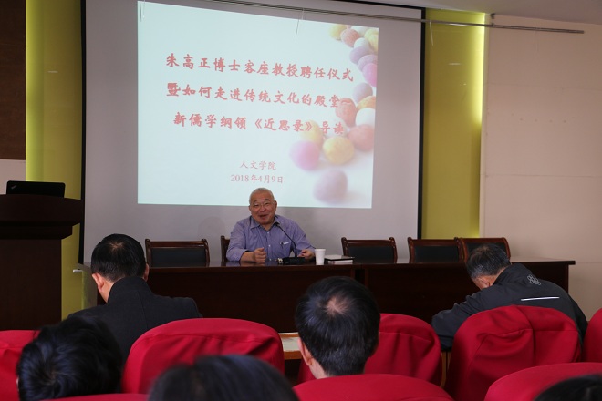 田家炳楼209会议室,隆重举行了朱高正博士江南大学客座教授聘任仪式。随后,朱高正博士围绕“如何走进传统文化的殿堂——新儒学纲领《近思录》导读”这一主题进行讲座。我院师生积极参加,会场座无虚席。