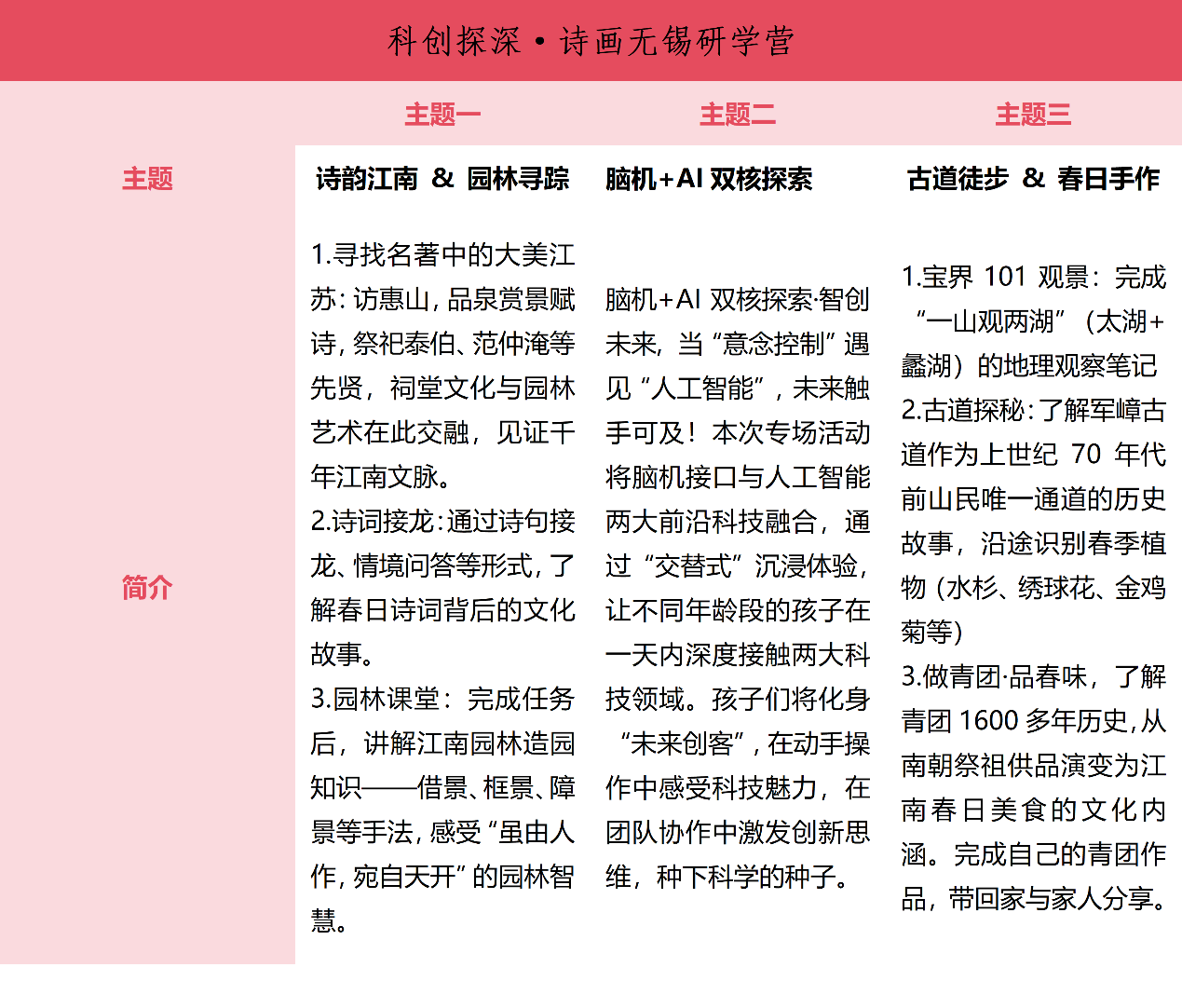 路线二:“科创探深·诗画无锡”主题研学营课程安排(4-8年级班)