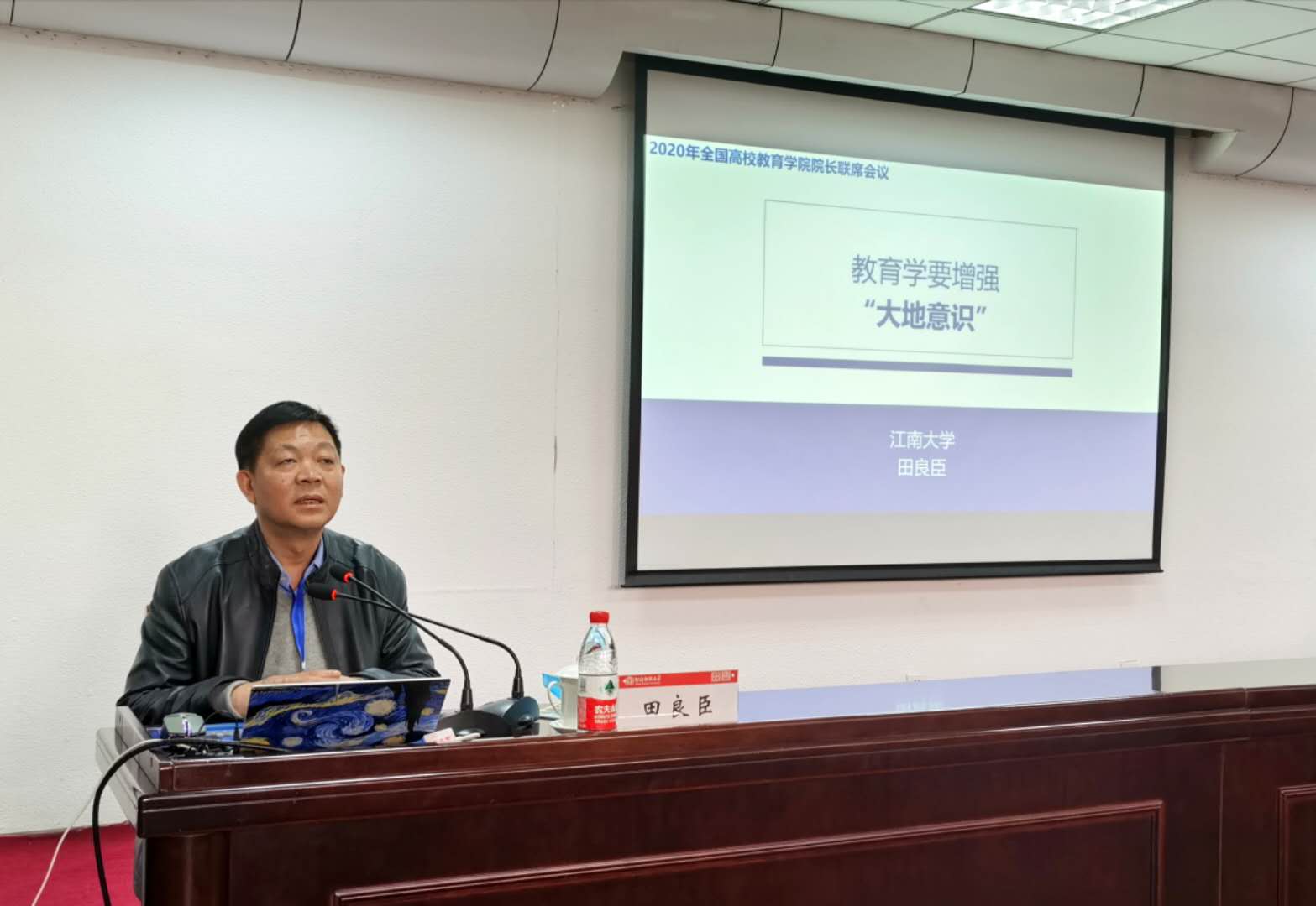 会议伊始,主办方河南师范大学党委书记赵国祥教授、北京师范大学教育学部部长朱旭东教授等领导致辞。大会报告阶段,来自北京师范大学教育学部副部长王晨教授、华东师范大学教育学部常务副主任荀渊教授等高校代表先后作大会报告。我院田良臣院长以“教育学要增强‘大地意识’”为题作了报告。