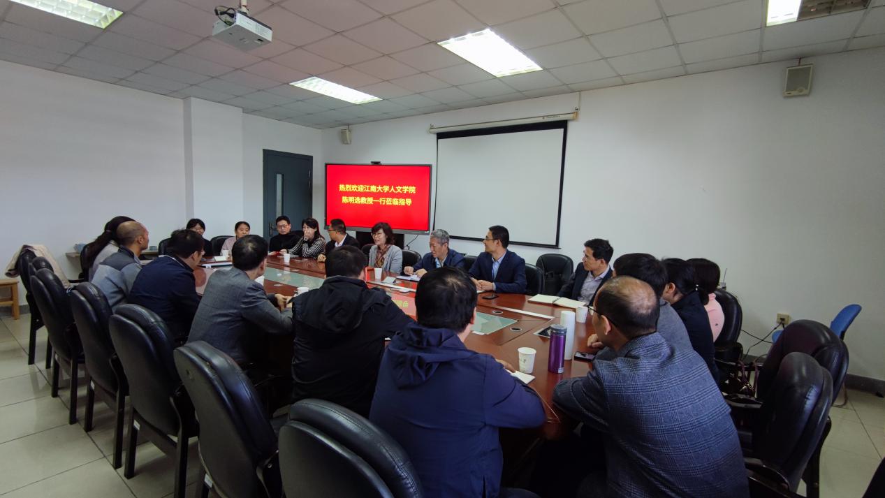 的建设发展情况,着重介绍了专业教师的学习背景以及学生的毕业去向。赵阳介绍了苏州大学教育学院的党建工作,包括和国企、中小学形成党建联盟,并就和江南大学进行高校支部共建达成共识。陈明选就学生毕业去向、课程基地和课程中心的建设以及教育理论的重构与教学范式的转型进行了报告,并提出要加强江南大学和苏州大学的合作交流。之后,惠恭健介绍了江南大学人才培养及教师培训工作的成果,建议加强校校交流与合作。随后,双方就党建结对、教师培训、学生就业、学科建设、项目申报、教学改革、学生实习等多方面问题进行了深入的沟通和讨论,均表示要加强互访和实践活动,进一步开展深度合作。