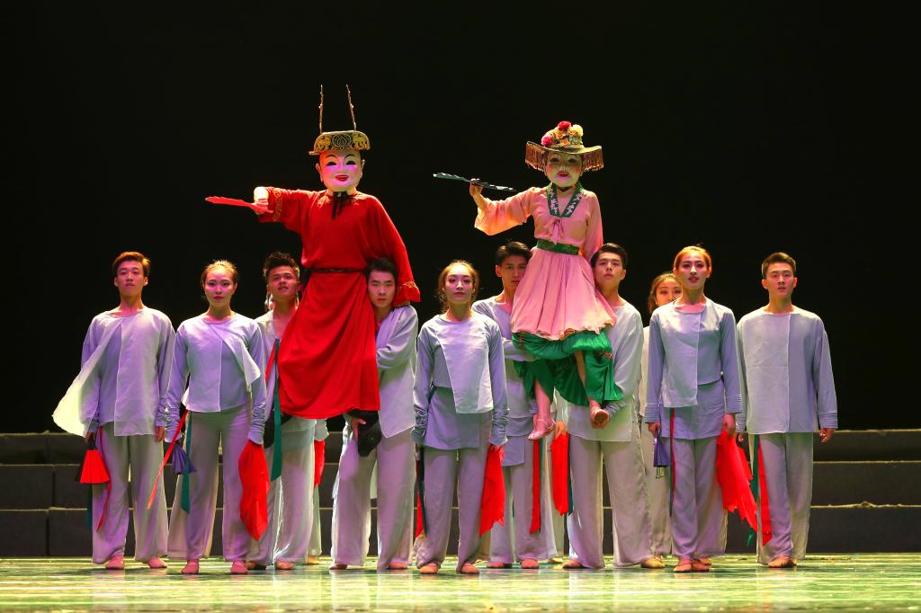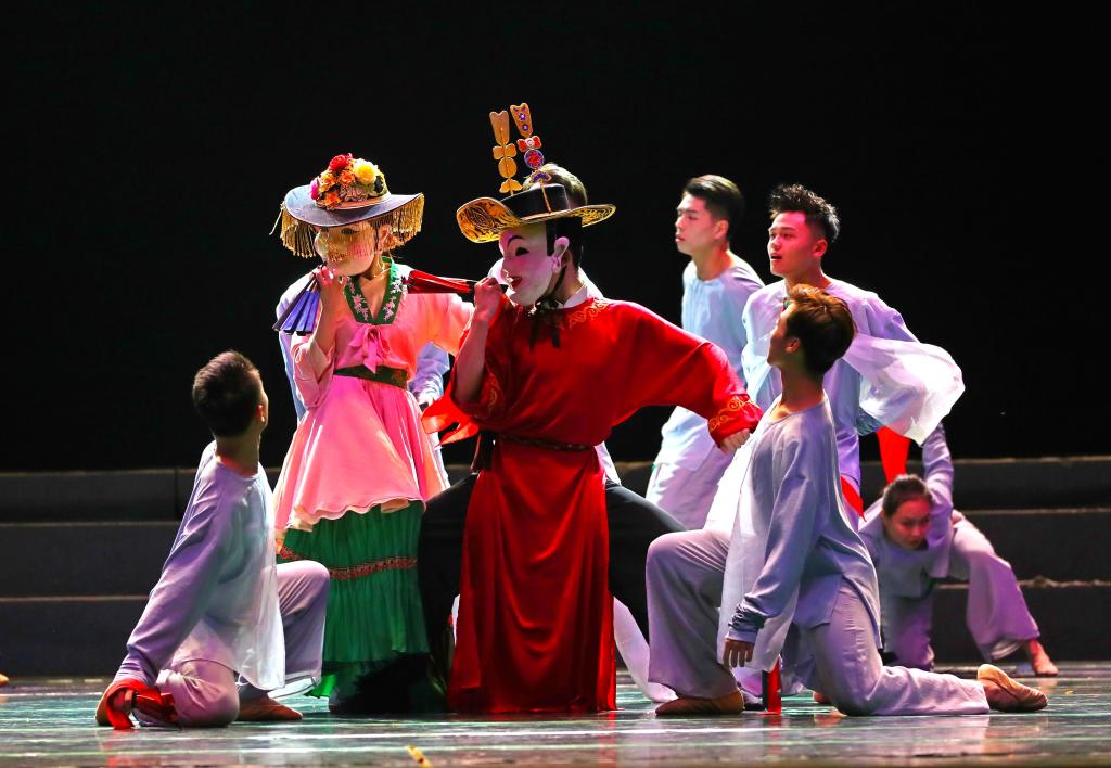舞蹈系师生以江苏省非遗舞蹈《男欢女喜》为素材,重新创作并表演的新版《男欢女喜》在江南大学舞蹈硕士毕业晚会上进行了首次演出。