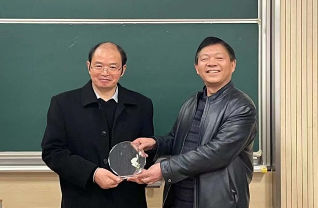 田良臣为尧新瑜教授颁发荣休纪念奖章