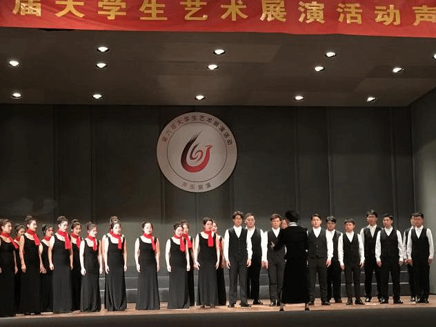 音乐系的大合唱指导教师马琼教授从节目策划时就精心准备,选择了两首高难度的无伴奏合唱作品作为展演曲目,其《Rytmus》作为一首捷克语作品不论在语言的学习还是演唱技巧方面都要求师生们倾尽全力准备。在为期数月的排练中,江南大学合唱团不断努力,从每个音准、每个节奏入手力求演唱效果完美。小合唱《美哩个桃源咯》展现了一幅江南生动的山水画卷:“水呀韵呀添呀添娇,从今莫唱桃源杳”,舞台上同学们身着绣花裙、唱响江南美。在优美旋律背后凝结着小合唱师生们的辛勤努力,平时的刻苦训练、精心磨合,最终在赛场上获得了乙组一等奖的好成绩。