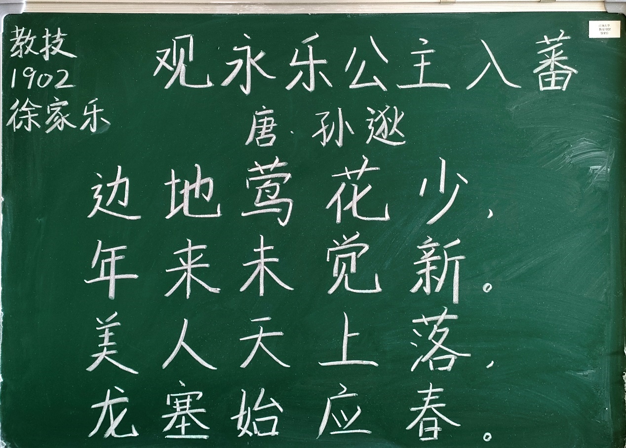 正确、规范地书写粉笔字是师范生的教学基本功,也是教育部师范专业认证现场评估必须展现的关键内容,更是适应基础教育改革发展对教师素质的新要求。为督促全体师范生掌握正确的粉笔字书写方法、提高粉笔板书水平、提升基础教学能力,学院特组织开展师范生粉笔字书写实训活动。