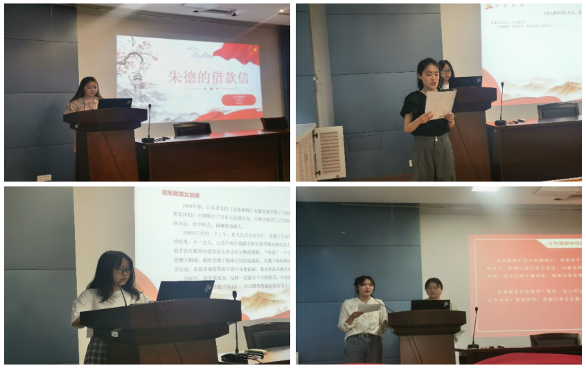 《聂荣臻写给日军的信》讲述了在百团大战期间,我军救下了两个父母双亡的日本小女孩,在敌对情绪十分激烈的那段时期,聂荣臻将军却能以至仁至义之心,写下一封归还日本女孩的信并托一 位可靠的农民将信和女孩一起带还给了日军的故事。第三封信是江竹筠(江姐的原型)狱中托孤信。在团员深情并茂的朗诵中,江姐狱中冷峻而又透着温情的形象历历在目,她横眉冷对严刑拷打她的敌人,一腔温情却也留给了自己的孩子。透过信件团支部再次重温了1949年新中国成立前期的历史岁月。