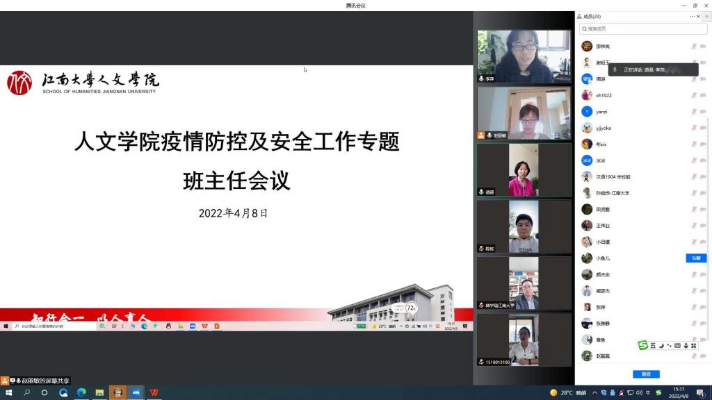 召开疫情防控及安全工作专题班主任会议。会议由学院分团委书记赵丽敏主持,学院党委书记姚剑英、党委副书记副院长李萍、全体班主任和辅导员共同参会。