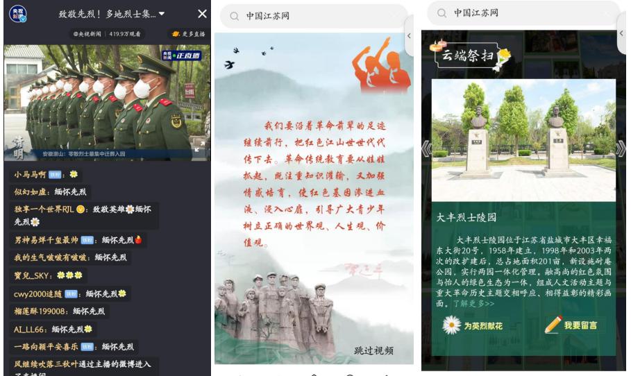 本次活动借助中国江苏网、江苏文明网、“新江苏”客户端等平台开展,各团支部有选择地参加 “云端祭扫”、“献词献唱”、“心声抒发”、“活动聚焦”、“线上课堂”或者“融媒展示”六个板块,通过网上平台向英烈献花,向革命先烈默哀致敬,而后进入线上英烈纪念馆认真阅读英烈们的事迹,在留言区与英烈“对话”,用质朴的语言向革命志士表达自己最真挚的情感。同学们纷纷表示,作为新时代的大学生,自己将追寻先烈的奋斗足迹,珍惜当下,励志成才,用自己的实际行动告慰先烈。