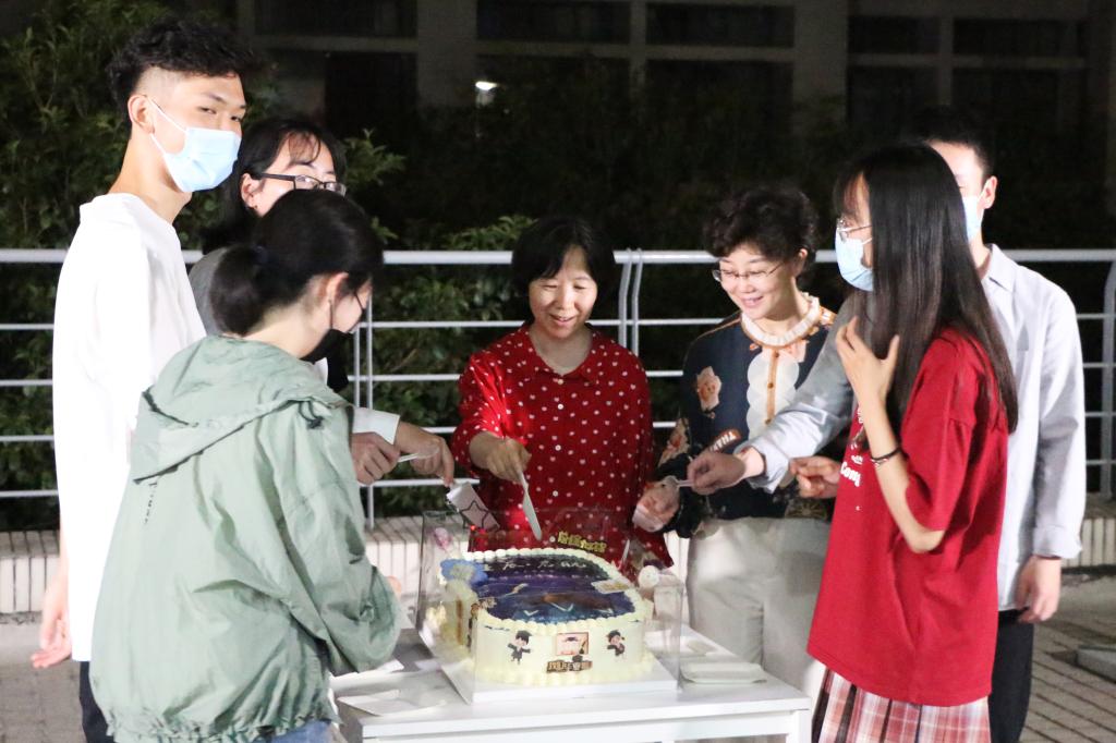 晚会进入中段,现场播放了各专业教师代表、班主任老师录制的祝福视频。师生情深,真挚祝福。毕业之际,老师们祝福毕业生前程似锦,未来可期。校友联络员聘任仪式上,姚剑英和于书娟为校友联络员颁发“天下江南人”纪念章。学院为每位一毕业生精心设计制作了专属毕业纪念品——刻有学生名字和“纵有疾风起 人生不言弃”的书签,姚剑英、李萍和班主任代表管乐老师一起为毕业生代表赠送纪念书签。随后,同学们为到场老师们献花,并共同切下象征美好祝福的毕业蛋糕。