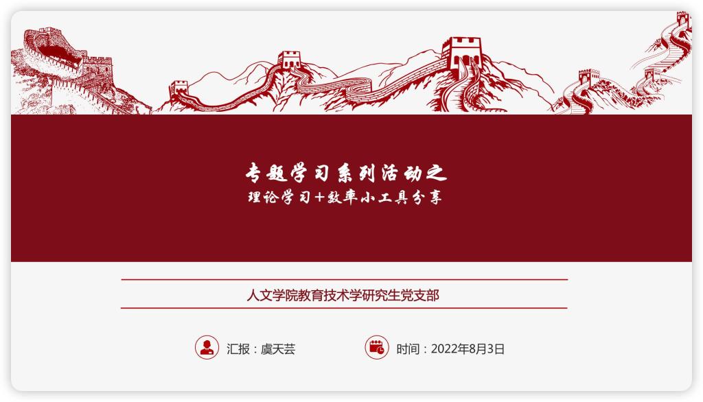 据悉,教育技术学研究生党支部自今年4月起推出专题学习系列活动,由学生党员轮流担任微党课主讲人。专题活动以党史学习为总线,以时政学习为重点,加强自身党性修养。同时,结合支部专业特长优势,开展Python、公众号编辑、PS、PR软件操作等技能分享,为支部党员的全面发展提供有力支持。截至目前,已形成微党课视频13节、技能学习系列材料及支部成员心得汇总等活动成果。