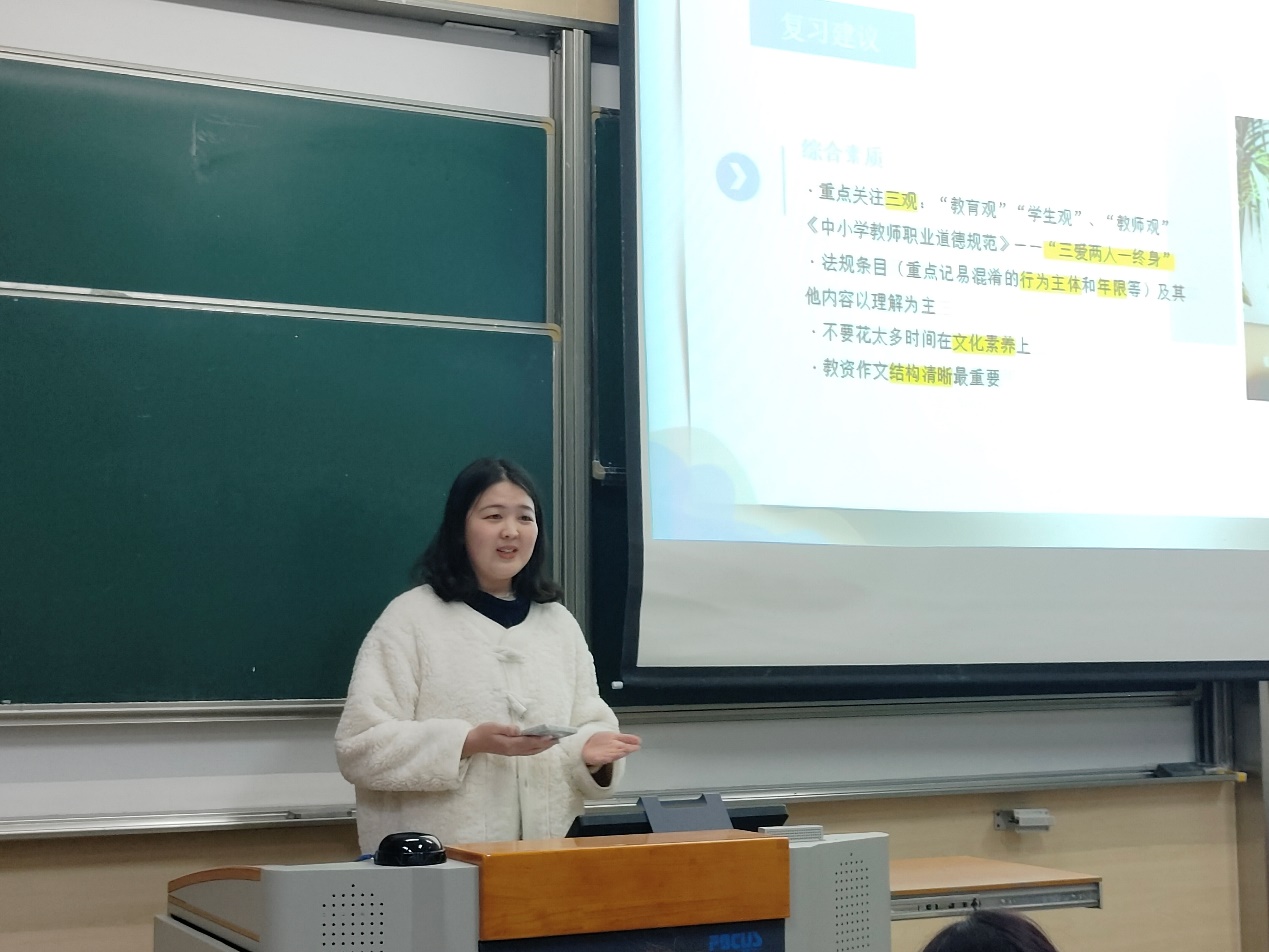 一直以来高度重视学生的师范生技能培养与提升,此次经验分享会是学风建设工作中的重要组成部分,也是朋辈引领的有效体现。五位优秀学子分享的经验和技巧,为正在准备教资考试的同学提供了切实有效的学习方法,帮助同学们厘清了教资考试的备考思路,也坚定了同学们成为一名未来教师的信心。