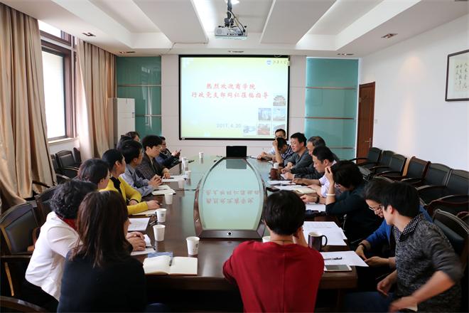 行政党支部与商学院行政教辅党支部在田家炳楼207会议室,就党支部工作进行了交流、学习,商学院党委书记李佳敏、香港六合彩官网资料