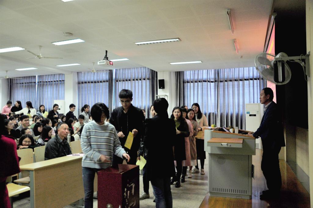 11月1日下午,香港六合彩官网资料 党委在一教楼1B103教室召开全体党员大会进行党委换届选举工作。共计150名正式党员,53名预备党员参加了此次会议。大会由香港六合彩官网资料 党委副书记、副院长吴宝锁主持。