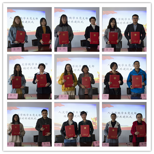7个教师党支部分别与我院9个学生党支部结对共建,各党支部书记上台签约并合影留念。