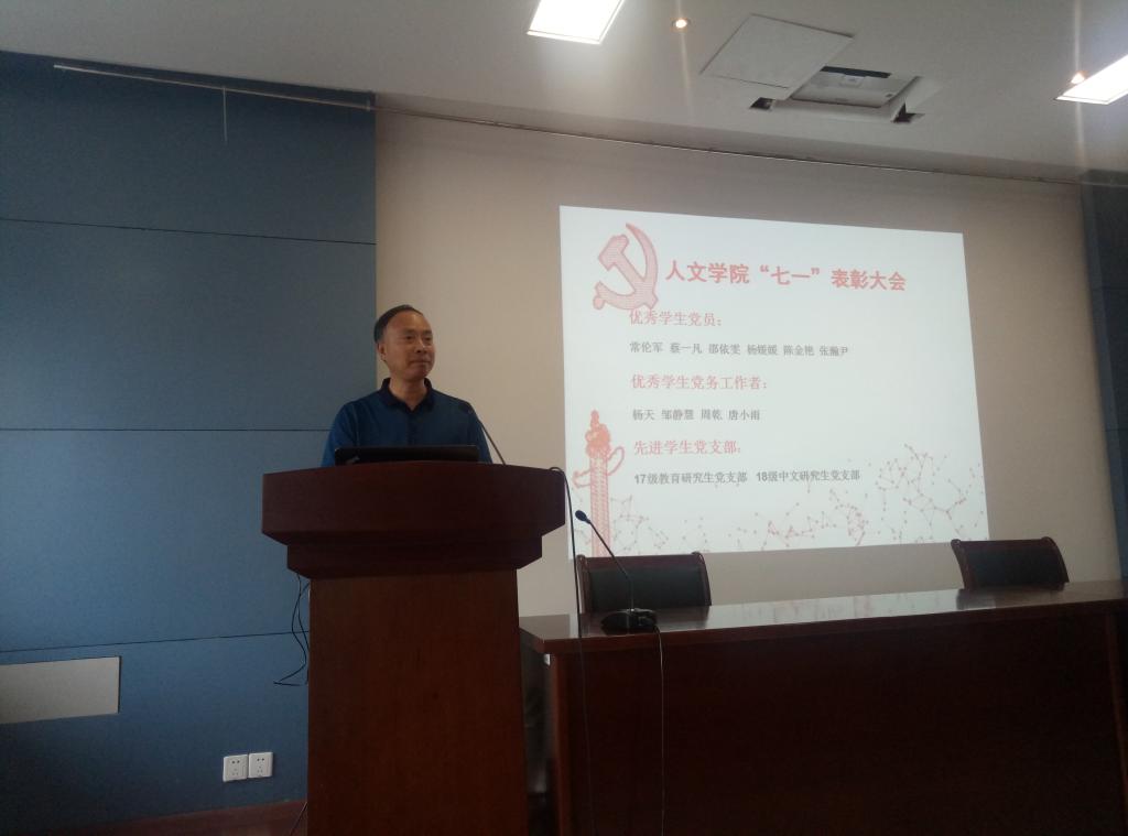 关于表彰2018-2019学年优秀学生党员、优秀学生党务工作者、先进学生党支部的决定》。经过层层选拔与考核,常伦军等六位同学被授予“优秀学生党员”,杨天等四位同学被授予“优秀学生党务工作者”。17级教育研究生党支部和18级中文研究生党支部被授予“先进学生党支部”。范增良、吴宝锁、沈贵鹏分别为优秀学生党员、优秀学生党务工作者、先进学生党支部颁发了荣誉证书。