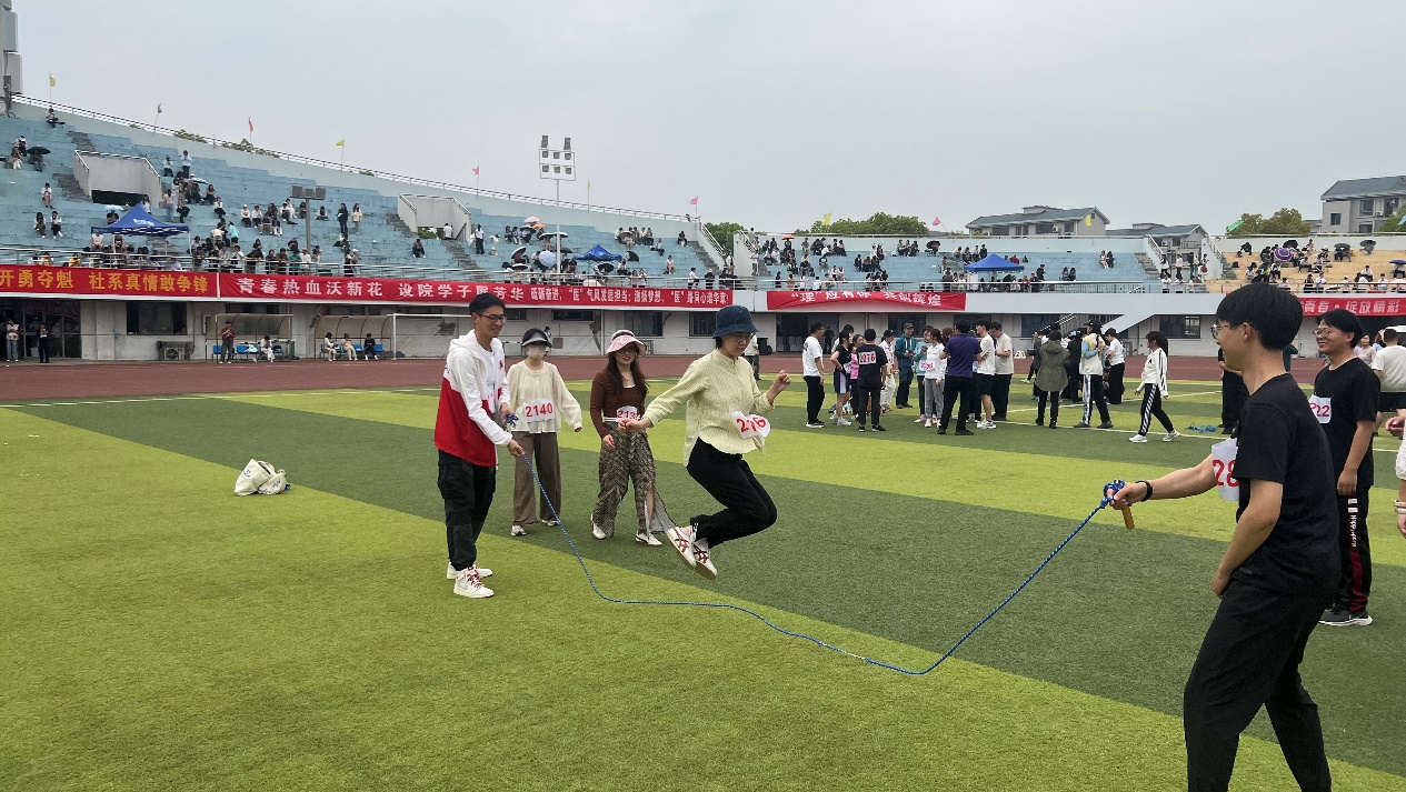在4月11日举办的江南大学第二十届运动会上,我院由27名老师组成的教工代表队在以党委书记王晖为领队、分工会主席任忠民为教练的带领下,分别参加了八段锦表演和男女混合毛毛虫竞速、男子组足球定点射门、男子组实心球、男女混合花毽围踢、男女混合团队跳绳、男子组篮球三分球、男子乙组立定跳远、男女混合同心鼓等八项竞赛项目,取得男子组足球定点射门、男子组实心球第四名,男子乙组立定跳远第七名的成绩,展示了我院教工良好的精神风貌,增强了大家的健身意识、团队意识和公平竞争意识。