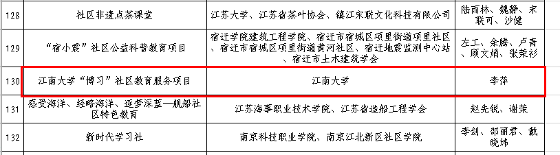 申报的“江南大学‘博习’社区教育服务项目”成功入选。