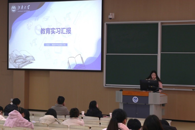 本次汇报依次由江苏省天一中学、江苏省锡山高级中学、无锡市第一中学、无锡市江南中学、无锡市东林中学、江苏省锡山高级中学实验学校、无锡市太湖格致中学、江苏省无锡师范附属小学、无锡市连元街小学、无锡市东林小学、江苏省无锡崇宁路实验小学等11个教育硕士实践基地实习生代表发言。同学们的汇报图文并茂,分享了本次实习任务完成情况、具体收获、问题困惑,并结合实习经历给予2024级教育专硕关于见习实习的建议和反思。