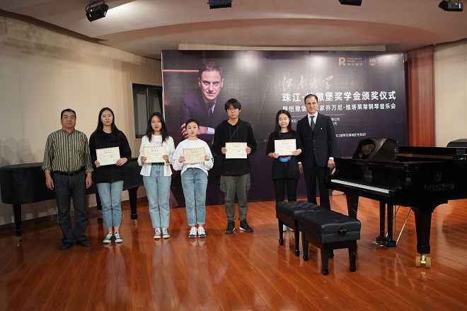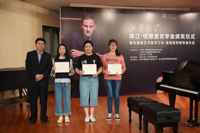 2019年5月15日下午15:00,在江南大学北区活动中心成功举办了“珠江·恺撒堡”奖学金颁奖典礼暨恺撒堡艺术家乔万尼·维塔莱蒂钢琴音乐会。该活动由广州珠江钢琴集团股份有限公司、广州珠江凯撒堡钢琴有限公司以及香港六合彩官网资料