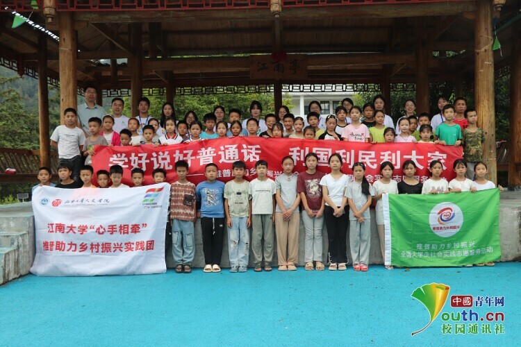 “心手相牵”推普助力乡村振兴实践团,紧扣国家乡村振兴战略与国家通用语言文字推广方针,于7月8日至20日在贵州省从江县独洞村开展了为期12天的支教活动。团队创新打造“推普 +”课程体系,将国家通用语言教育与乡土文化传承、科学素养启蒙、艺术美育实践深度融合,探索出推普赋能乡村教育的新路径。实践以推普为主线,课程设计采用双轨模式:基础层通过拼音绘本、情景对话等形式夯实语言根基,系统提升侗族孩童的语言能力;特色层则创新开设“AI 启智未来”“生命感知”“纹韵侗风”等跨学科课程,让孩子们在植物拓染中解读侗族纹饰,在绿豆种植中体会“生长”的意义,在《映山红》戏剧排演中传承红色精神。从“推普助力”到“精神共富”,教育帮扶的质变正借着童声与侗歌的交响,悄然发生。