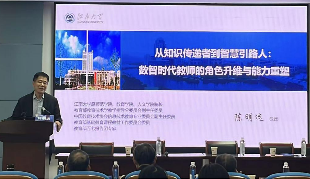 江南大学陈明选教授作了《从知识传递者到智慧引路人:数智时代教师的角色升维与能力重塑》的报告。他指出,数智时代教育正从“技术叠加”向“范式革命”转型 。面对AI带来的“知识权威”解构等挑战,教师需实现角色升维,从传统 “知识传递者” 转变为学习引导者、情感联结者的“智慧引路人”,并进一步构建了涵盖数智素养、教学设计力、持续学习与创新力等的教师五维能力图谱。在实践路径上,教师个体要转变心态、补齐能力短板等,院校需营造支持性文化、提供培训等。最终强调数智时代教师核心价值是 “育人育心育智”,终极指向培养 “转识成智” 的完整生命。