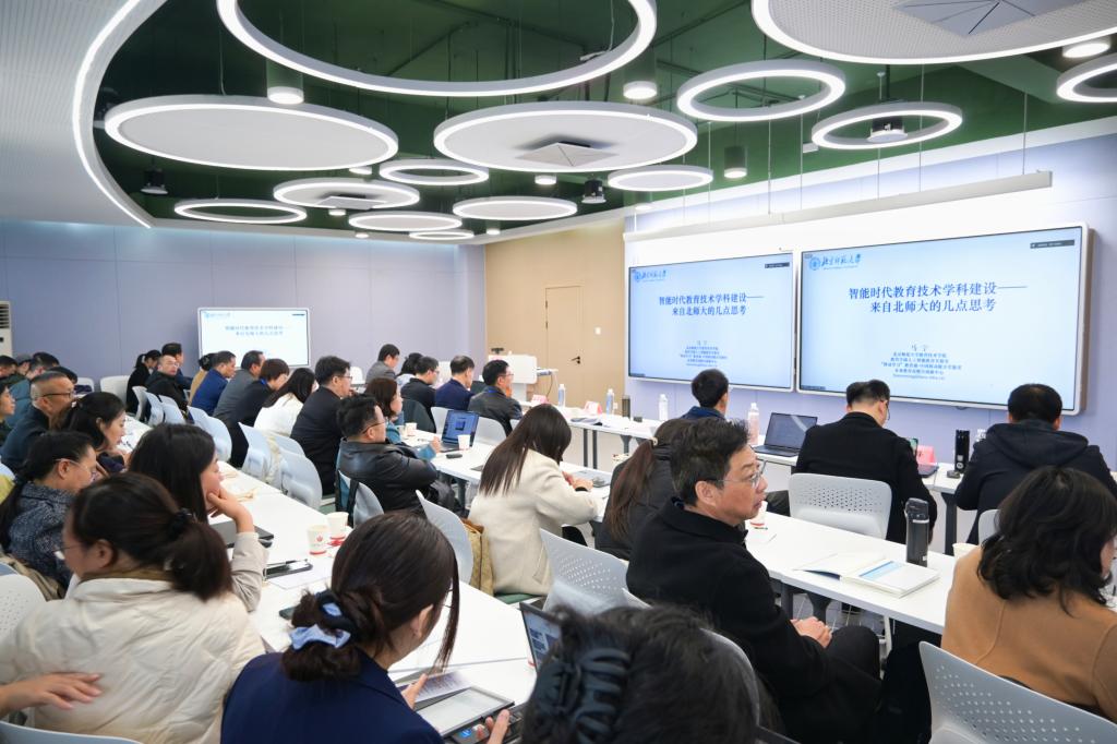 在特邀报告环节,刘邦奇以《人工智能赋能教师发展》为题,系统阐述了AI赋能教师队伍的政策脉络、实践场景与挑战。马宁以《智能时代教育技术学科建设——来自北师大的几点思考》为题,分享了北京师范大学教育技术学科“顶天立地”的发展与实践。陈明选以《数智化进程中教育技术学人才培养体系的时代重构》为题,深入剖析了专业当前面临的现实困境,提出转型关键在于面向未来、因校制宜,进行以素养为导向、产教研深度融合的体系重构。